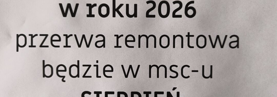 Informujemy, że w roku 2026 przerwa remontowa będzie w miesiącu SIERPIEŃ